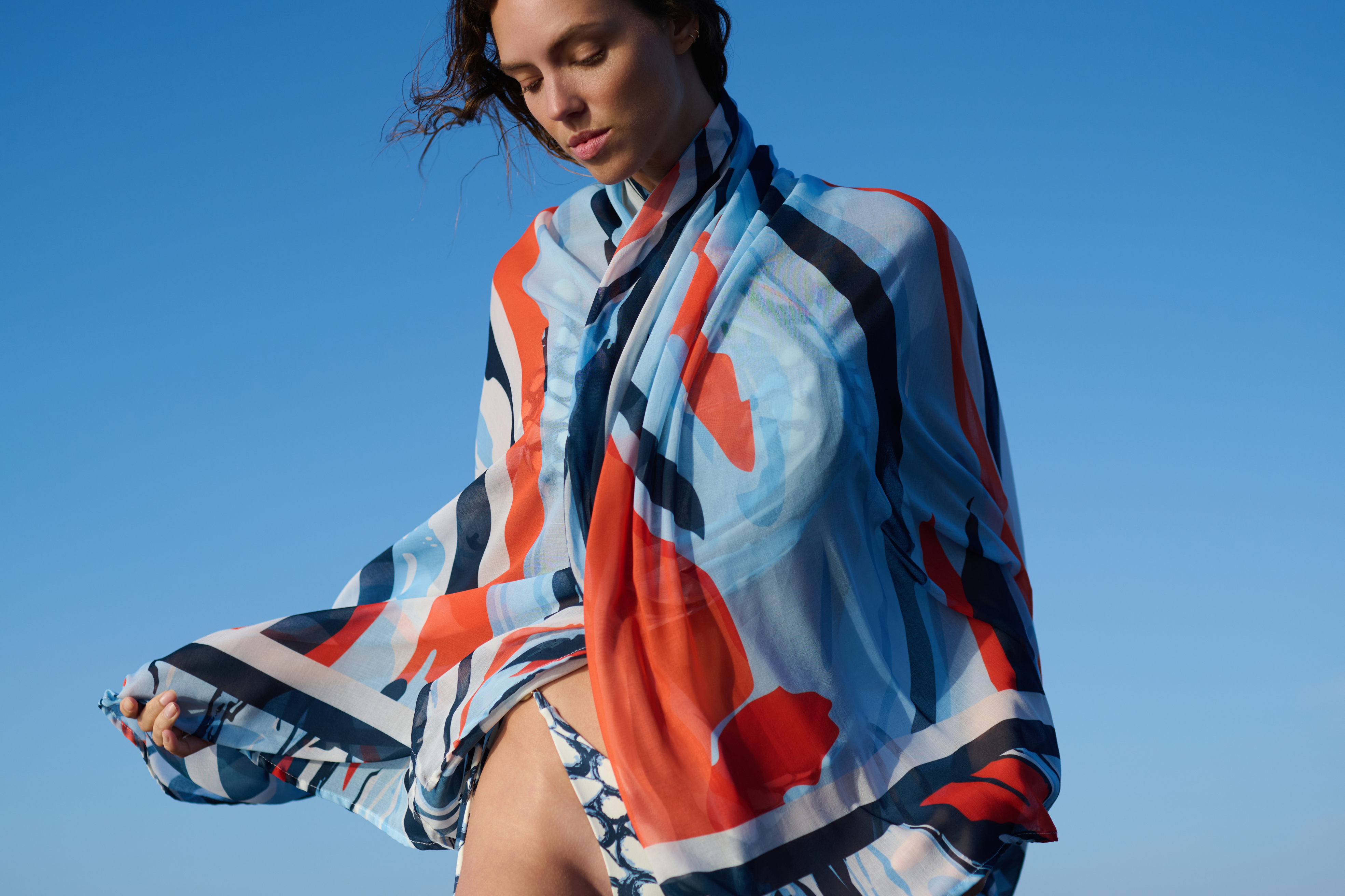 Es el retrato de una mujer que encuentra su fuerza en la quietud, entre la arena tibia y el ritmo constante de las olas. Conectada a los elementos y bañada por el sol, la colección celebra el valor de lo hecho a mano. Tejidos que respiran, colores que vibran y siluetas que evocan la serenidad, la energía y la vitalidad infinita del verano.